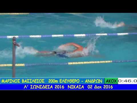 Λ' ΙΩΝΙΔΕΙΑ 2016 ΝΙΚΑΙΑ ΜΑΡΙΝΟΣ ΒΑΣΙΛΕΙΟΣ 200m EΛΕΥΘΕΡΟ